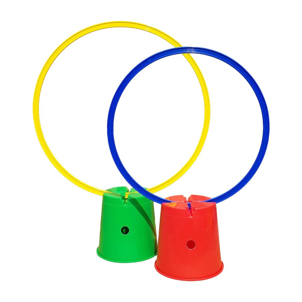 Use it as a marker, as a baton holder using the holes in the bucket, or as a hoop holder using the slots cut out at the top.