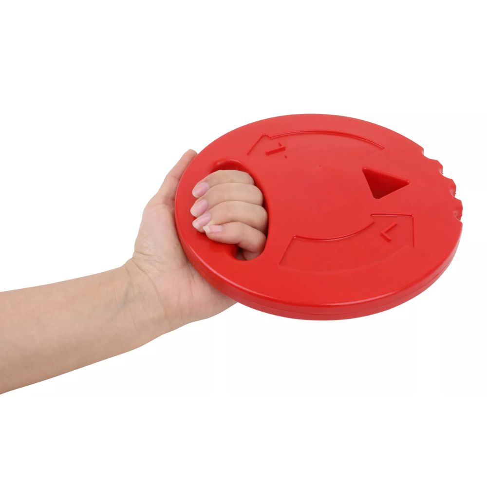 • Soft discus with grip aid and arrow indicating the direction of rotation.
