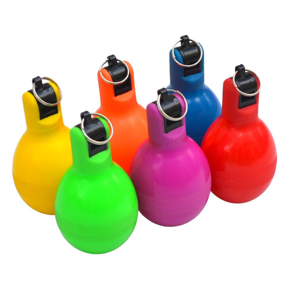 Handheld whistle which can be simply squeezed in the hand to produce enough air for a loud sound.